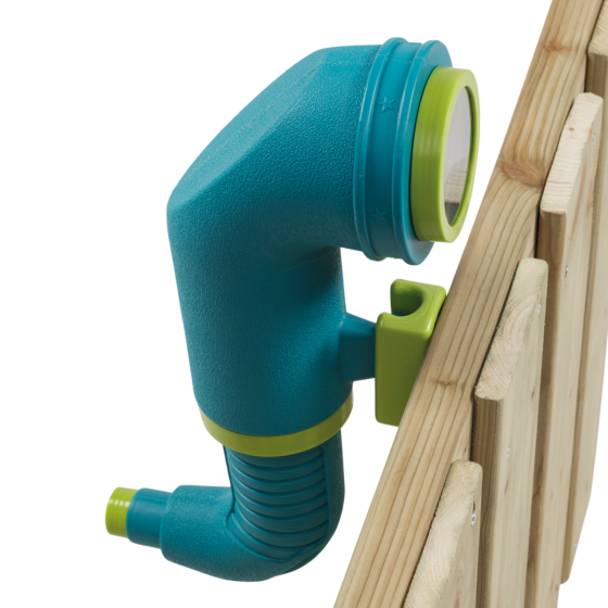 KBT Periscope ‘Star’ adds a fun and imaginative touch to any cubby house or playground structure. Its unique design and vibrant turquoise and lime green colour combination encourage kids to explore, observe, and pretend they’re on exciting adventures—whether steering a submarine, exploring a jungle fort, or standing guard in their play tower. Made from UV-stabilised plastic, this periscope is durable, weather-resistant, and easy to install.